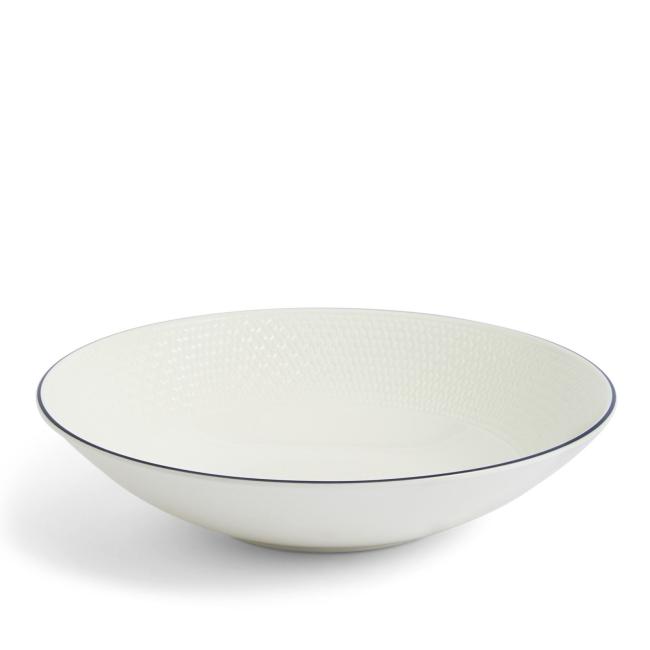 Het Gio Blue Line is een prachtige aanvulling op het Wedgwood GioGio Pinstripe Blue en Gio PInstripe White. Uitgevoerd met een diep blauwe lijn langs de rand, met honingraat motief, in fine bone china een materiaal dat erg sterk is maar ook dun en licht. Het perfecte blauwe accent op uw eettafel!